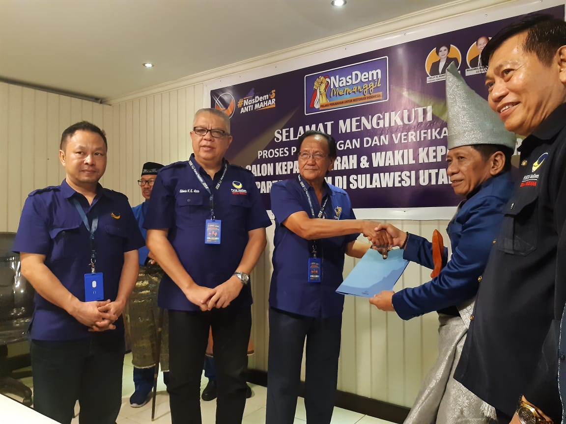 Ia diantar para tokoh adat dan tokoh agama asal Bolaang Mongondow ke Sekretariat DPW Parta NasDem Sulut di kawasan Kairagi, Manado, Senin (9/12/2019) sore. SRM diterima oleh Tim Penjaringan bakal calon Gubernur dan bakal calon wakil Gubernur Sulut tahun 2020, yakni Victor Mailangkaya, Edwin Assa dan Nico Tampi.