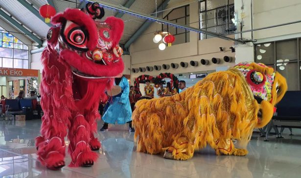 Penampilan barongsai beserta pakaian khas Cina yang dikenakan oleh para Duta Bandara Sam Ratulangi ini pun menarik perhatian penumpang.