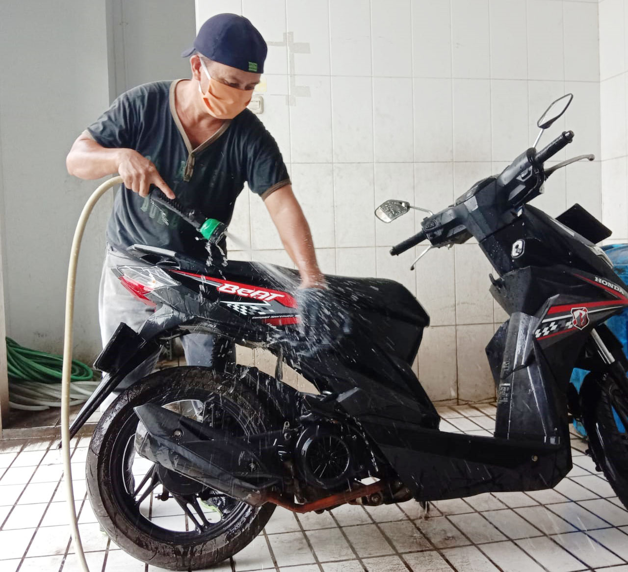 Menurut Nur Alamsyah Rasman, Safety Riding PT. Daya Adicipta Wisesa, kegiatan mencuci motor bisa menjadi alternatif implementasi #cari_aman, bahkan ketika #dirumahaja. “Dengan mencuci motor, kita juga turut mencegah terjadinya kecelakaan lalu lintas akibat faktor kendaraan karena kegiatan mencuci motor membuat kita lebih mengenal dan mengetahui kondisi kendaraan,” kata Nur Alamsyah.(71)