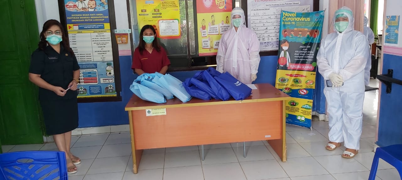 METRO, Airmadidi – Kepedulian terhadap tenaga kesehatan sebagai garda terdepan memerangi pandemi Corona Virus Disease 2019 (Covid-19) ditunjukan Dinas Kearsipan Kabupaten Minahasa Utara (Minut). Instansi yang dipimpin Dra Femmy M Pangkerego MPd ME itu Selasa (28/04/2020), menyerahkan bantuan berupa Alat Pelindung Diri (APD) kepada tim medis di Puskemas Talawaan.