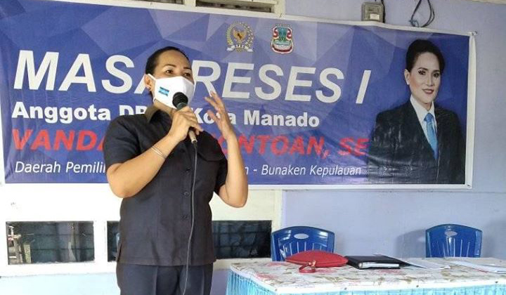 METRO, Manado- Vanda Pinontoan, SE. Wakil Ketua Komisi I DPRD kota Manado, Kamis (30/04/2020) menggelar Reses. Dua tempat dijadikan sasaran jaring aspirasinya, Pertama bertempat di Kelurahan Pandu Lingkungan II dan kedua di Keluarahan Sumompo, Lingkungan I. Resesnya berjalan sesuai protokoler kesehatan yang dianjurkan pemerintah.