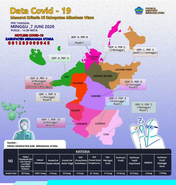 Minahasa Utara kembali bertambah. Dari data Minggu (07/06/2020),