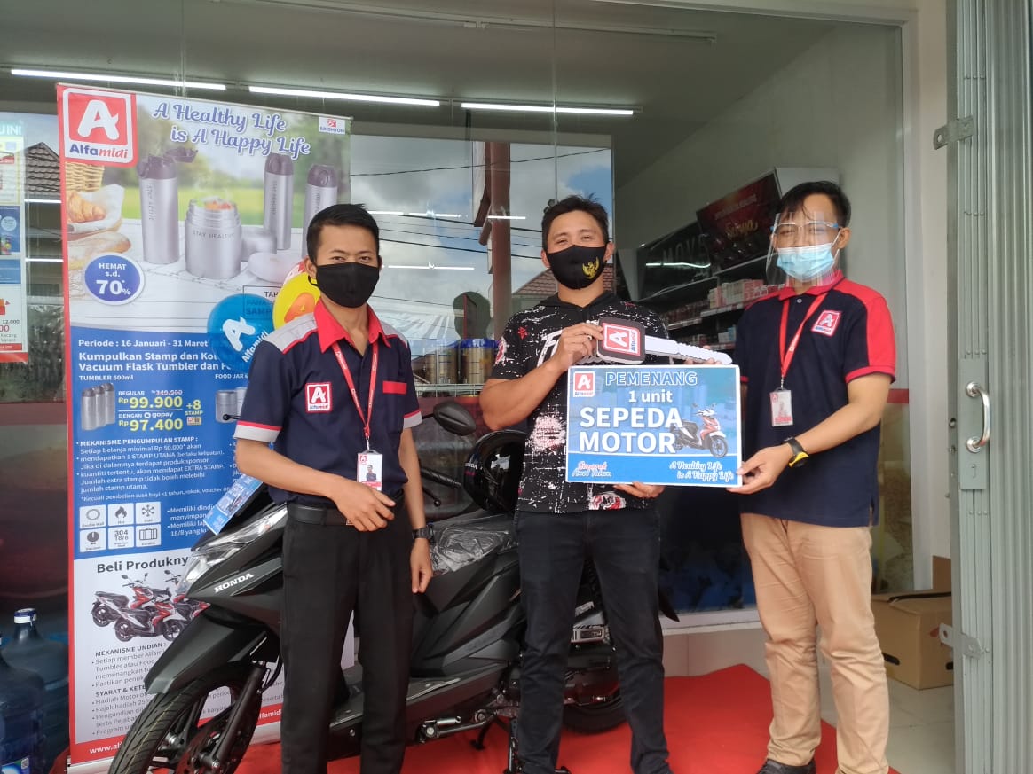 METRO, Manado- Di tengah pandemi Covid-19, Ferdi Palit tak menyangka bisa mendapatkan satu unit sepeda motor dari Alfamidi.