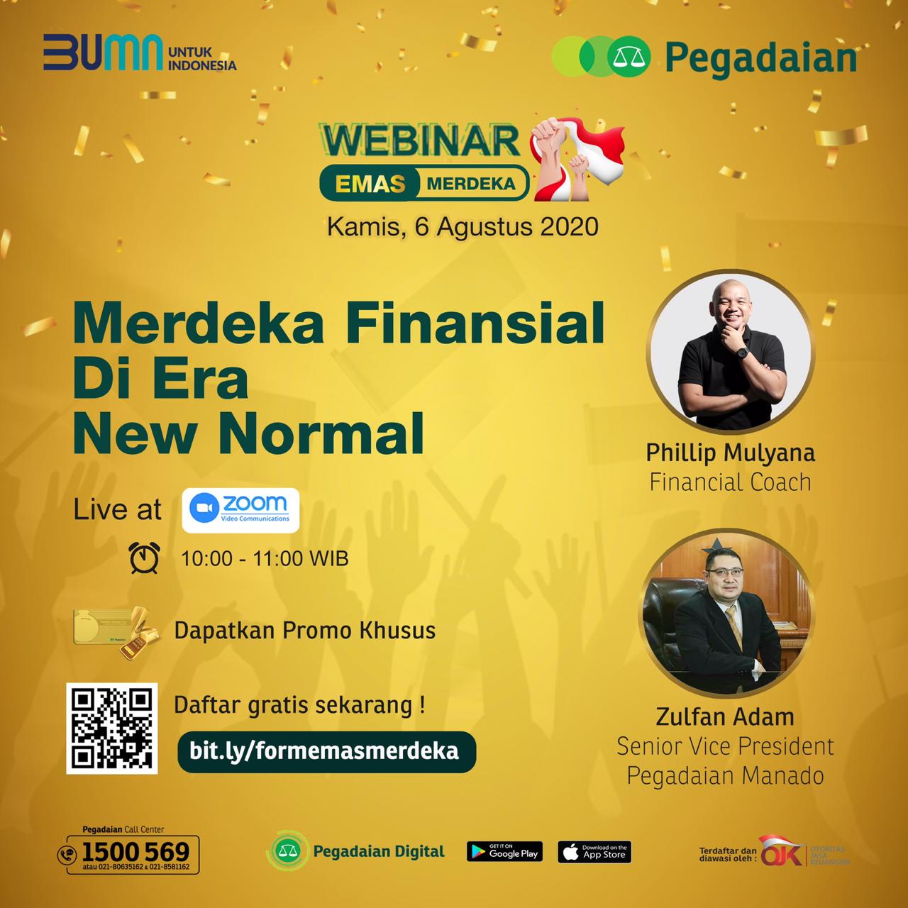 Hal ini diungkapkan Senior Vice President Pegadaian Kantor Wilayah V Manado, Zulfan Adam, dalam Webinar bertajuk Merdeka Finansial di Era New Normal, pada Kamis (6/8) siang.