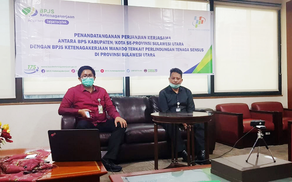 METRO, Manado- BPJS Ketenagakerjaan (BPJAMSOSTEK) Cabang Manado melakukan penandatanganan MoU bersama Badan Pusat Statistik (BPS) yang ada di kabupaten/kota se-Sulawesi Utara, terkait perlindungan bagi petugas Sensus Penduduk (SP) 2020. Penandatanganan Mou dilakukan secara daring antara Kepala BPJS Ketenagakerjaan Manado, Hendrayanto dan Kepala BPS di kabupaten/kota se-Sulawesi Utara.