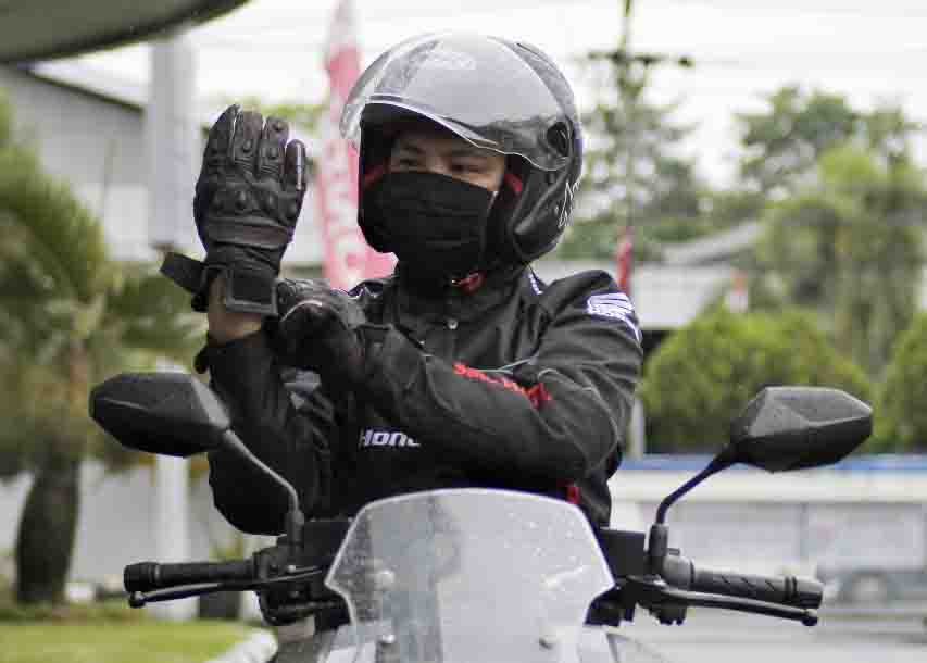 Menurutnya, naik motor tanpa perlengkapan berkendara tidak disarankan. Perlengkapan naik motor harus dipakai agar berkendara tetap aman dan nyaman. “Tubuh kita butuh perlindungan dari efek benturan, benda asing, cuaca, atau bahkan virus dan penyakit yang mengintai,” katanya.