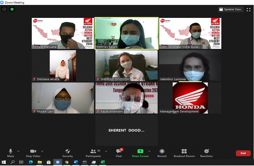 Melalui seleksi AHM Best Student yang semakin disempurnakan untuk menantang kreativitas siswa ini, DAW mengumumkan 2 pemenang seleksi yaitu Kayla Andresen dari SMA Negeri 1 Tomohon dengan judul karya tulis Uji Efektivitas Home Based Learning, dan Nurain Lairi dari SMA Negeri 1 Gorontalo dengan judul karya tulis Pengaruh Alang – alang Terhadap Perkecambahan Tanaman Jagung.