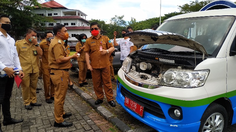 Pjs Bupati memeriksa kendaraan dinas Pemkab Minut.