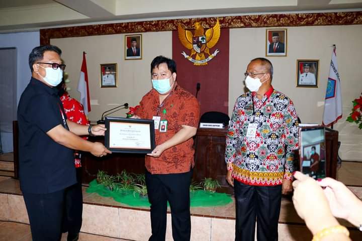 Plt Kadis Kesehatan Minut dr Alain V Beyah menerima Piagam Penghargaan Sensanitasional award 2020.