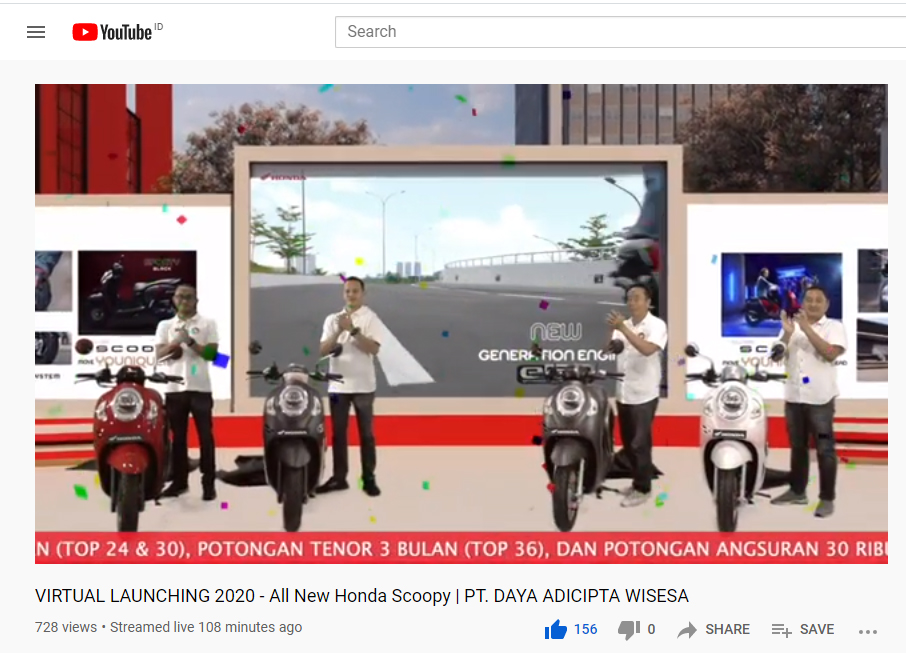“Launching All New Honda Scoopy dilakukan secara virtual karena mendukung pemerintah dalam memutus rantai Covid-19 yakni dengan menghindari terciptanya kerumunan orang yang biasanya terjadi jika mengadakan launching produk baru,” ujar Marketing Division Head DAW, Handi Tanuberata.