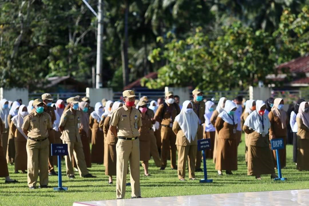 METRO, Boroko- Bupati Bolaang Mongondow Utara (Bolmut) Drs Hi Depri Pontoh, Senin (11/01) memimpin apel ribuan Aparatur Sipil Negara (ASN) di lingkungan Pemerintah Kabupaten (Pemkab).
