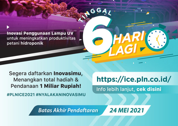 METRO- Pendaftaran kompetisi inovasi kelistrikan yang diselenggarakan oleh PLN tersisa 6 hari lagi yaitu hingga 24 Mei 2021. Total hadiah mencapai 1 miliar rupiah untuk juara dan pendanaan prototipe.