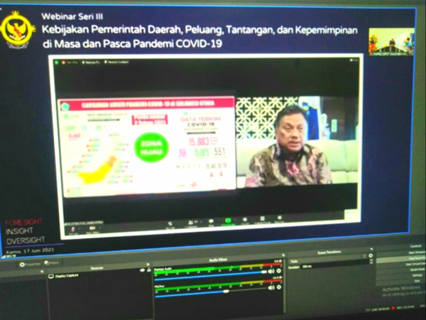 METRO, Manado- Gubernur Sulawesi Utara (Sulut) Olly Dondokambey mengungkapkan strategi penanganan Covid-19 di Provinsi Sulut dalam Webinar Seri III Badan Pemeriksa Keuangan (BPK) RI, dengan tema ‘Kebijakan Pemerintah Daerah, Peluang, Tantangan dan Kepemimpinan di Masa dan Pasca Pandemi Covid-19’, secara virtual dari Tondano, pekan lalu.