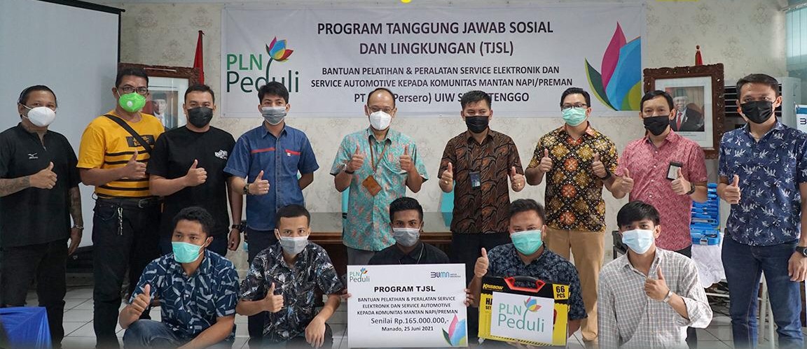 METRO, Manado– PT PLN (Persero) Unit Induk Wilayah Suluttenggo memberikan bantuan Pelatihan dan Peralatan Service Elektronik dan Service Automotive kepada Komunitas Mantan Napi dan Preman Kota Manado.