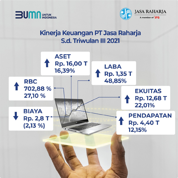Transformasi digital dan Inovasi yang berhasil diusung ditambah dengan keberhasilan melakukan Efisiensi memberikan dampak positif di sektor keuangan Jasa Raharja sehingga membukukan kinerja kuartal III-2021 yang positif. Hal ini terlihat dari pertumbuhan total aset sebesar Rp 16 triliun atau naik 16,39% dari posisi periode sama tahun lalu.