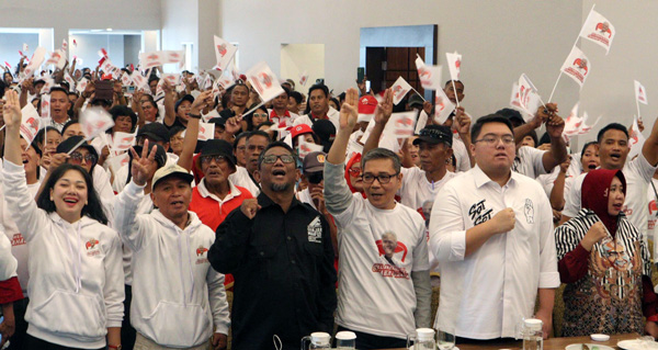 Saat membawakan sambutan, Ketua Tim Pemenangan Daerah (TPD) Ganjar Mahfud Sulut, Bung Rio Dondokambey tampil memukau dan membakar semangat ribuan relawan.
