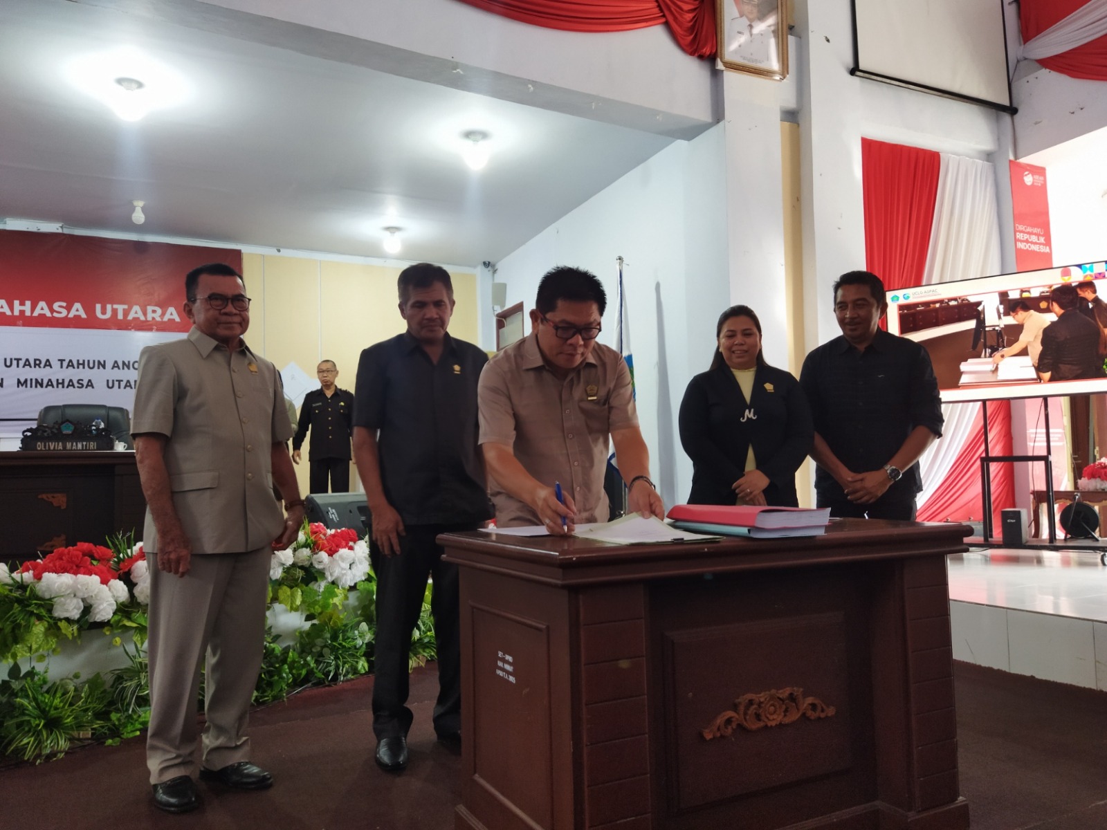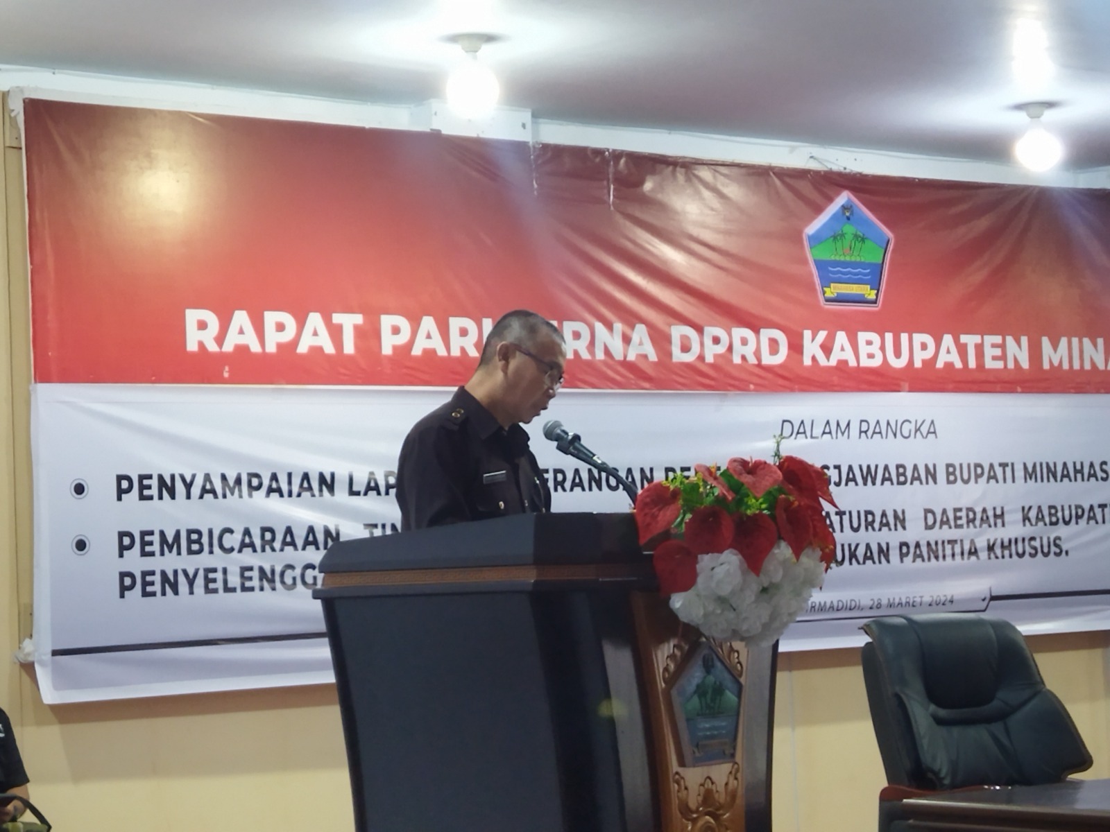 METRO, Airmadidi — Dewan Perwakilan Rakyat Daerah (DPRD) Kabupaten Minahasa Utara, Kamis (28/03/2024) menggelar sidang paripurna dengan agenda penyampaian Laporan Keterangan Pertanggungjawaban (LKPJ) Bupati Minahasa Utara Tahun 2023 serta pembahasan Rancangan Peraturan Daerah (Ranperda) Penyelenggaraan Wajib Belajar.