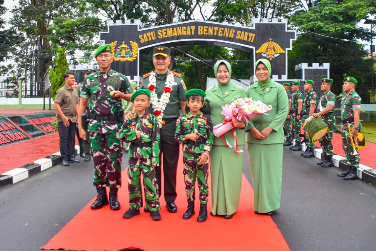METRO, Manado- Pangdam XIII/Merdeka Mayjen TNI Candra Wijaya didampingi Ketua Persit KCK Daerah XIII/Merdeka Fenti Candra Wijaya mengunjungi markas Batalyon Zeni Tempur (Yonzipur) 19/Yudha Karya Nyata yang bermarkas di Kecamatan Kalawat, Kabupaten Minahasa Utara, Kamis (4/7/2024).