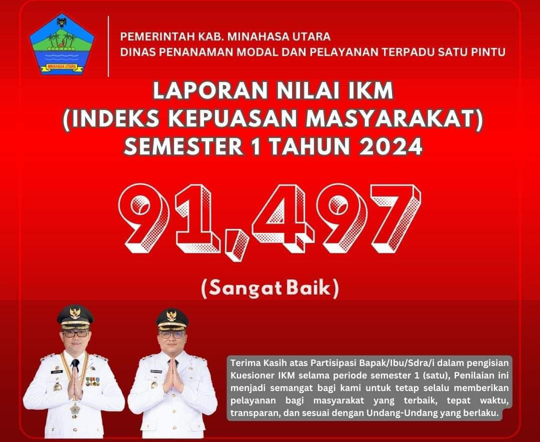 METRO, Airmadidi – Pemerintah Kabupaten Minahasa Utara di bawah kepemimpinan Bupati Joune Ganda dan Wakil Bupati Kevin William Lotulung memberi perhatian utama kepada pemenuhan dan pelayanan publik. Terbukti dengan capaian Indeks Kepuasan Masyarakat (IKM) terhadap pelayanan publik Dinas Penanaman Modal dan Pelayanan Terpadu Satu Pintu (DPMPTSP) untuk Semester I Tahun 2024 yang mencapai 91,497, dengan hasil “Sangat Baik”.