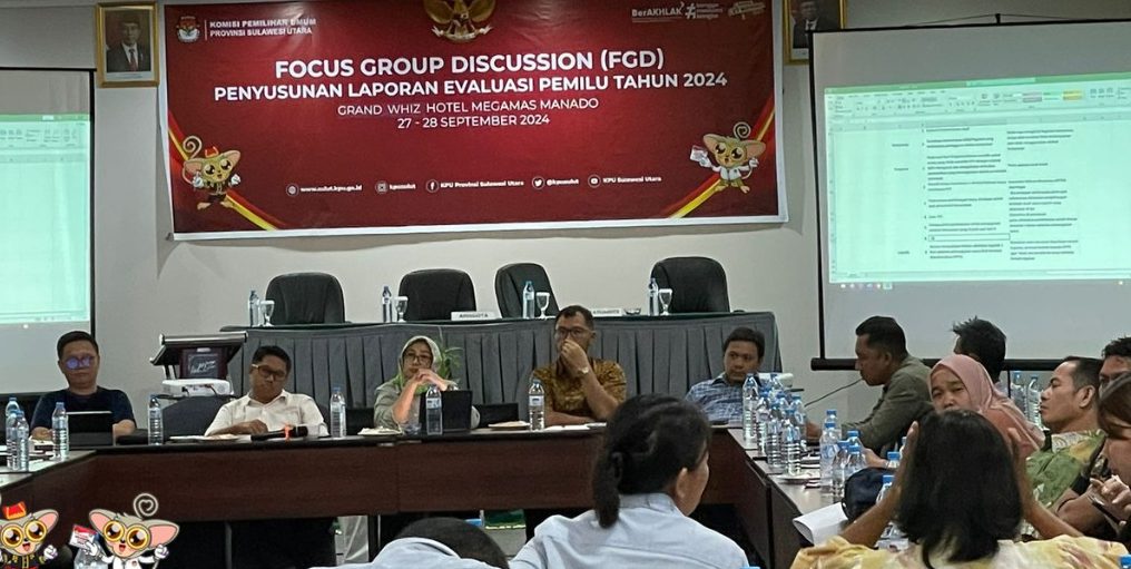 KORANMETRO.COM – Komisi Pemilihan Umum (KPU) Minahasa Utara mengikuti Focus Group Discussion (FGD) Penyusunan Laporan Evaluasi Pemilu Tahun 2024 yang digelar KPU Sulut di Grand Whiz Hotel Megamas Manado, Jumat – Sabtu (27-28/10/2024).