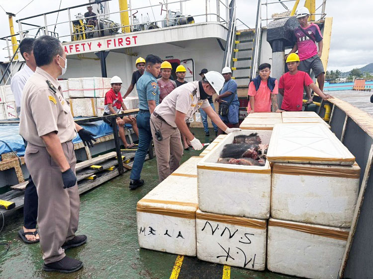 KORANMETRO.COM- Petugas Balai Karantina Hewan, Ikan, dan Tumbuhan Sulawesi Utara (Karantina Sulut) menahan 800 kilogram (Kg) daging babi hutan atau celeng, yang berasal dari Pulau Falabisahaya, Kecamatan Mangoli Utara, Kabupaten Kepulauan Sula, Maluku Utara.