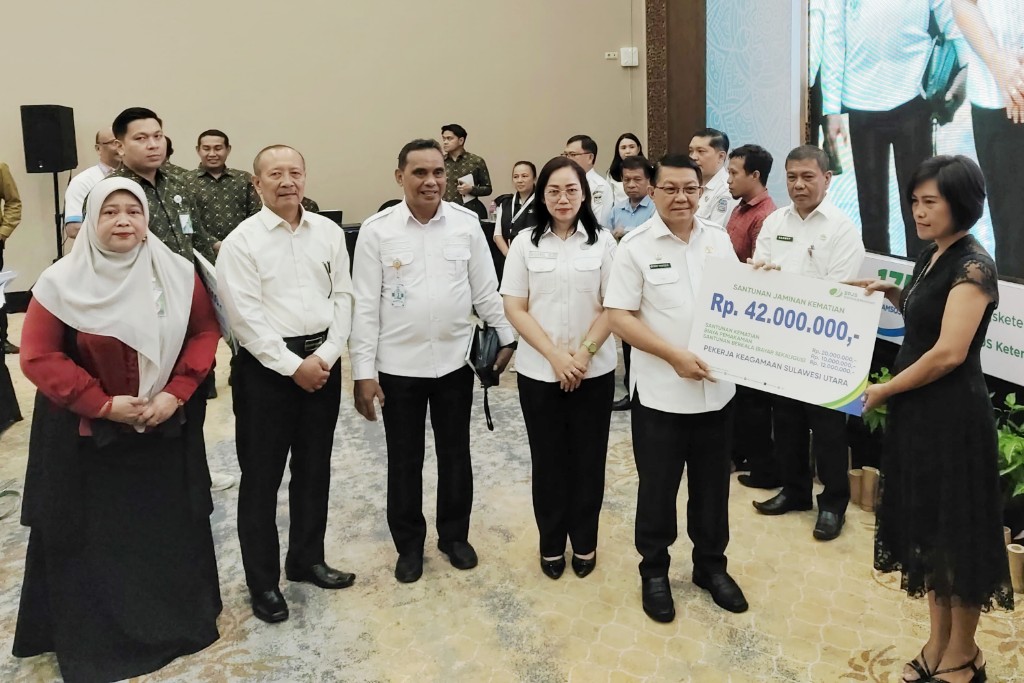 Dalam kegiatan ini BPJS Ketenagakerjaan menyerahkan kartu kepesertaan untuk agen desa di Minahasa; kartu kepesertaan bagi pengurus koperasi merah putih; kartu peserta pekerja rentan di Bitung; dan santunan program Perkasa bagi lima orang ahli waris pekerja.(ian)