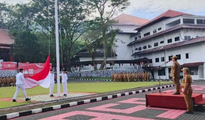 Airmadidi, KORANMETRO.COM – Pemerintah Kabupaten (Pemkab) Minahasa Utara menjadikan peringatan Hari Olahraga Nasional (Haornas) ke-42 sebagai momentum memperkuat prestasi olahraga daerah. Upacara digelar di lapangan Kantor Bupati Minut, Selasa (9/9/2025), dengan Sekretaris Daerah (Sekda) Novly G. Wowiling bertindak sebagai inspektur upacara.
