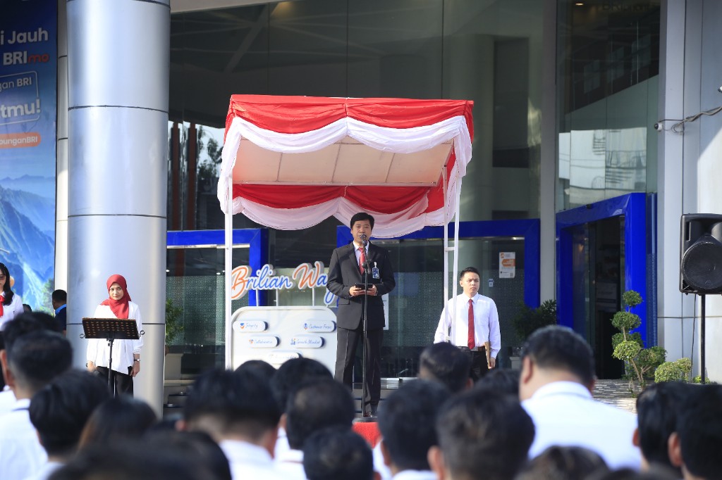 Upacara digelar di halaman kantor Region 16 Manado, dan diikuti seluruh insan BRIlian.