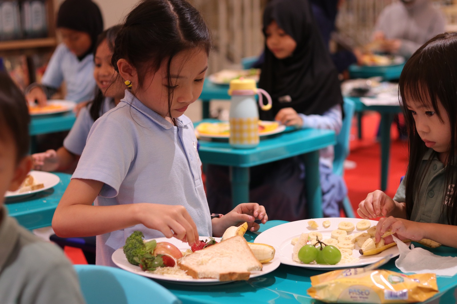 Selanjutnya, anak-anak berkreasi dalam sesi Art Plating, yaitu seni menata makanan menggunakan buah dan sayur segar di atas piring layaknya sebuah karya seni.