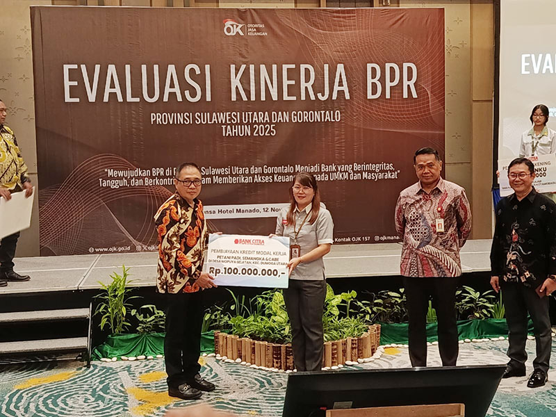 Penyerahan dilaksanakan dalam kegiatan Evaluasi Kinerja BPR tahun 2025, yang diinisiasi oleh DPD Perhimpunan Bank Perekonomian Rakyat Indonesia (Perbarindo) Sulutgomalut, di Hotel Luwansa, Manado, pada Rabu (12/11/2025).