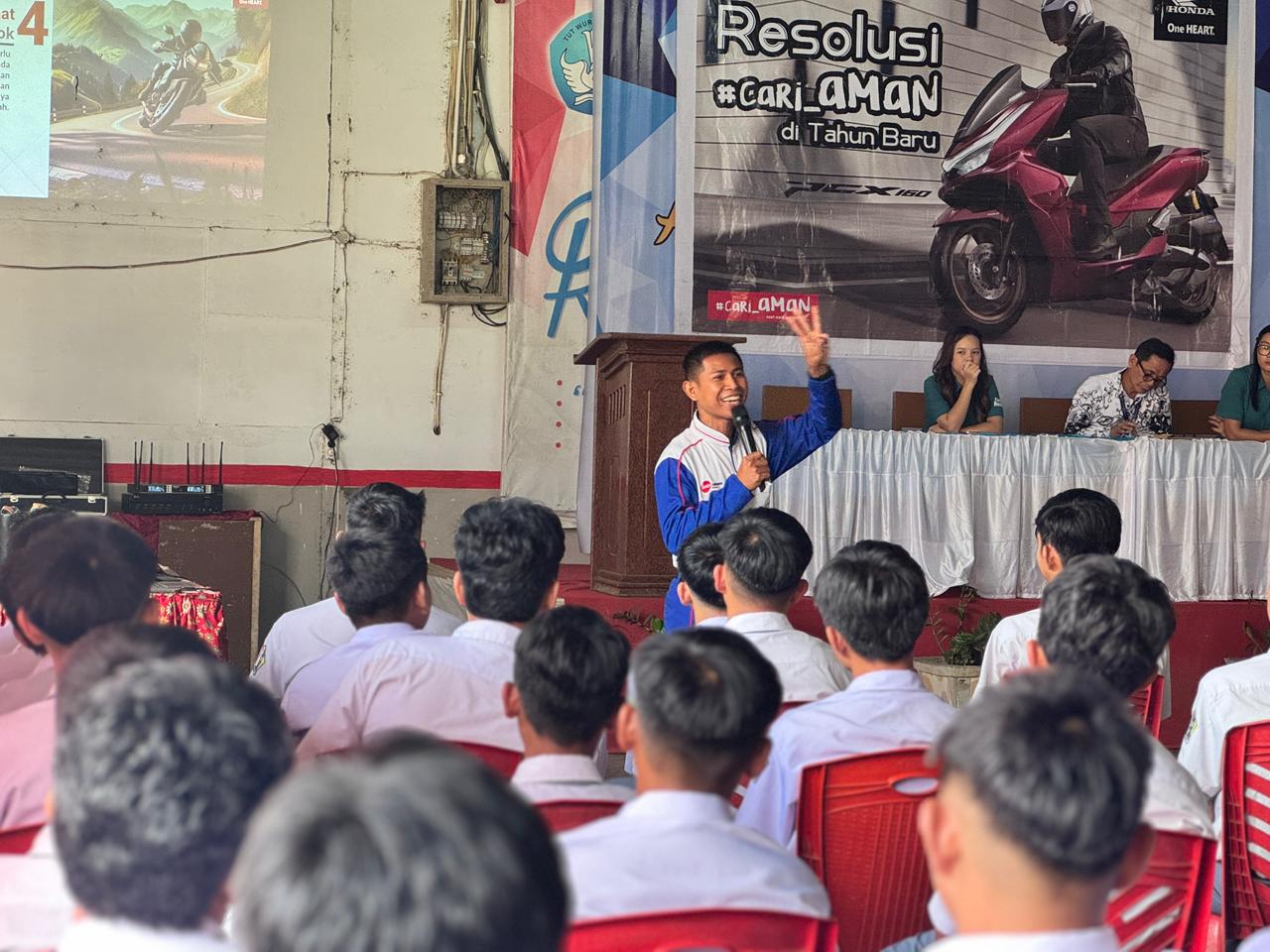 Instruktur Safety Riding DAW, Andhika Reynold Salindeho, menegaskan bahwa membangun pola pikir aman harus dimulai sejak usia sekolah.
