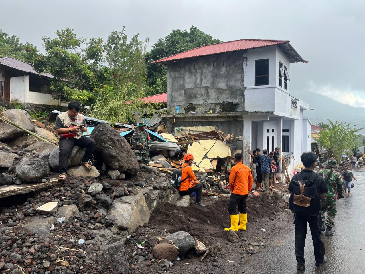 Banjir bandang mengakibatkan korban jiwa, bangunan rumah dan akses jalan tertimbun material.