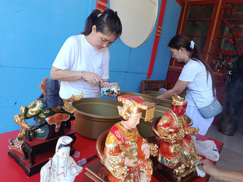 Arca-arca dewa-dewi dan orang suci di dalam Kelenteng dikeluarkan, dicuci menggunakan sabun dan sikat. Arca-arca ini berusia puluhan tahun, bahkan ada yang ratusan.