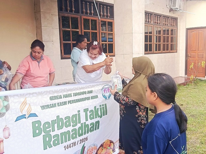 Sementara itu, di GMAHK Tumumpa, beberapa ibu-ibu anggota gereja terlihat sibuk mempersiapkan paket takjil untuk dibagi-bagikan kepada umat muslim yang menjalankan ibadah puasa. Paket takjil disiapkan di gerbang masuk gereja supaya dapat langsung diserahkan ketika warga datang.