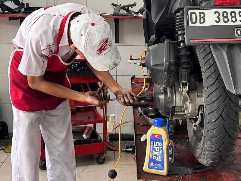 Ia juga menambahkan bahwa servis di AHASS dilakukan oleh mekanik tersertifikasi dengan menggunakan suku cadang asli Honda serta peralatan standar Honda, sehingga kualitas dan keamanan kendaraan tetap terjaga.