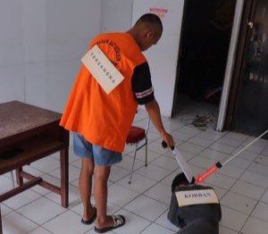 Adegan dalam rekonstruksi ini, memperlihatkan awal pertemuan tersangka pelaku dan korban di sebuah kebun gudang pengolahan kelapa putih, hingga adegan ketika pelaku menghabisi nyawa korban.